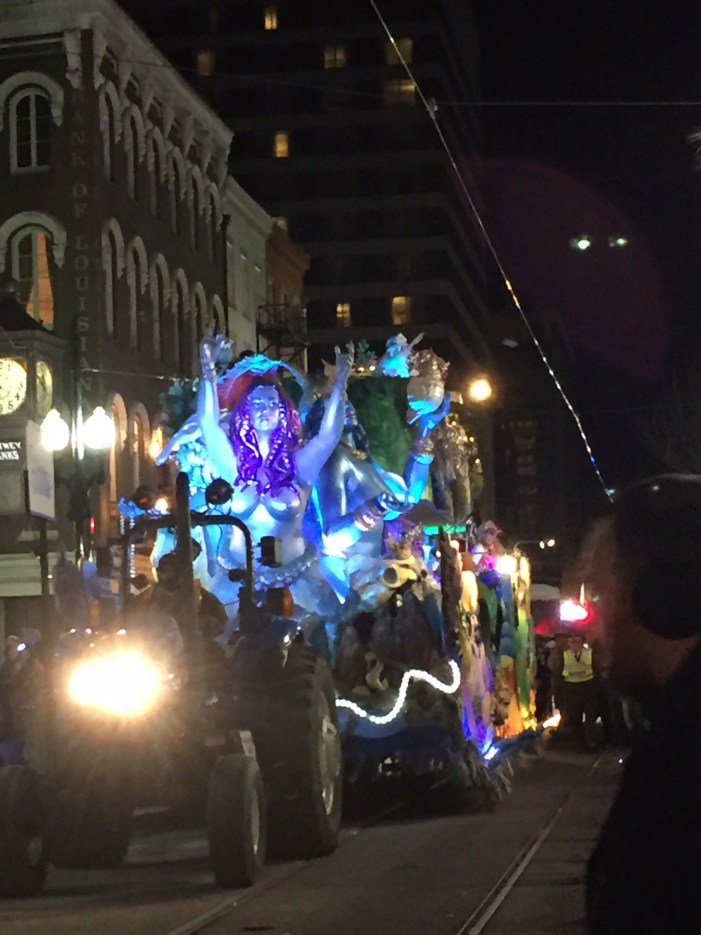 I spoke with several locals who ride in the different parades and asked what it was like. The answer was always similar- that it makes you feel like a rock star. I was blown away by the different men and women participating in the parade who were dancing or strutting along with such sheer joy on their faces that no matter what they looked like- they just glowed with beauty. Being part of a huge crowd was a bit scary, except that we quickly bonded with the people within arm’s length who you had to show civility towards when jostling for beads, and there was no greater moment than when one person on the float made eye contact with me, pointed my way and handed me a prize. How in the huge sea of humanity that we are; it is those moments when you lock eyes and acknowledge each individually that is made more profound by the chaos. Oh yes, Mardis Gras is addictive.
