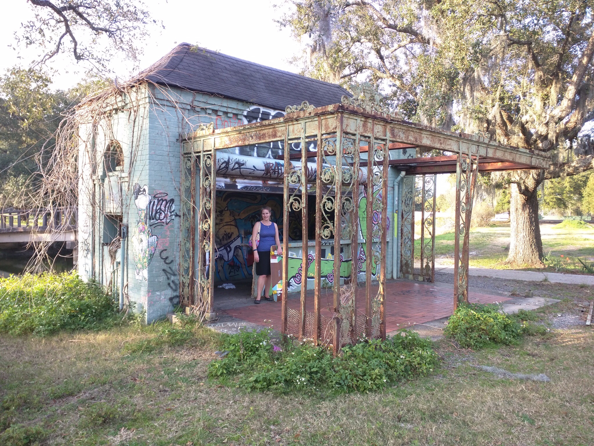 Last week I was completely charmed by the city of New Orleans. To begin with my husband and I decided to use the trip as a test on the feasibility of traveling with our long boards. I was apprehensive over carrying it around in airports and trying to get them in the overhead compartment, especially on our smaller regional flights. There was no reason to worry, it worked like a charm. We strapped them to our backpacks and even coming in around the 40in in length mark, they still fit easily in the overhead compartment; and since they are flat backpacks could still squish into the compartment in front of them. I was particularly relieved when there weren’t even any sideways glances or scowls from the flight attendants. I suppose they have seen stranger things. I did gate check it on one leg just to see how that worked and it was also easy breezy.